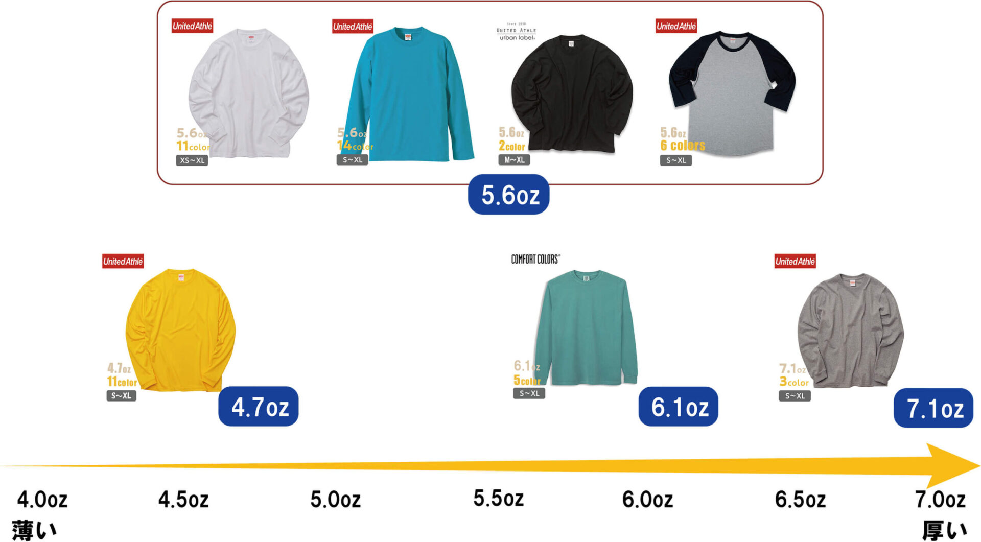 オリジナル長袖Tシャツを生地の厚さから選ぶ